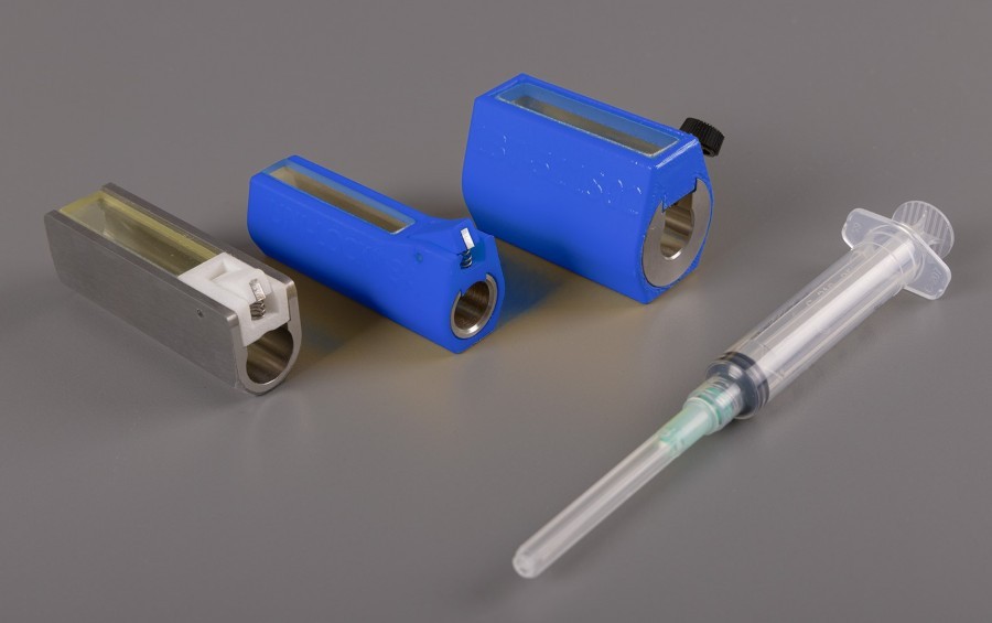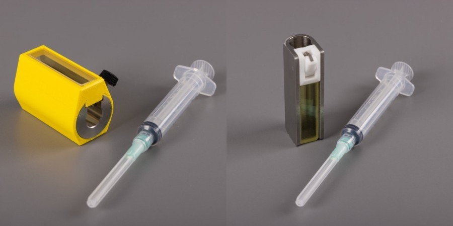 511KeV PET tungsten syringe shield (left) and the Unilock 4 tungsten syringe shield (right).