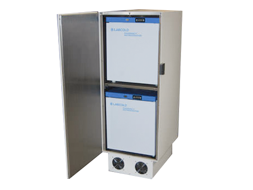 Lead lined cupboard to accommodate fridges with a choice of either 3 mm, 6 mm, 10 mm, 25 mm or 50 mm lead shielding. Cooling fans are also incorporated to prevent overheating. Customer to specify fridge/freezer size, and specifications.