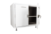 Our standard shielded cupboard is available with 3 mm, 6 mm or 10 mm lead shielding. The outer surface has a durable epoxy stove enamel finish and the inside is finished with a stainless steel liner. The cupboard has two lockable hinged doors and is fitted with one shelf – if required.